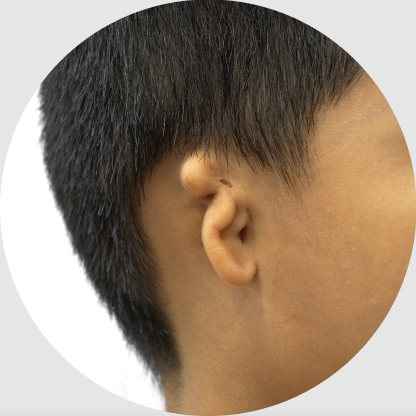 The surgeries start when the child has grown big enough, typically between six and ten years of age, to provide enough rib cartilage to make an adult size ear. First, the cartilage from several ribs is removed through an incision on the child’s chest. The cartilage is carved and pieced together to create an ear framework. This framework is buried underneath the scalp. After the ear has healed, more surgeries are required to complete the reconstruction: elevating the ear away from the scalp, repositioning the earlobe and other adjustments.